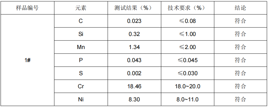 结论:结论:结果符合 ASTM A276/A276M-17 牌号 304 的成分要求: