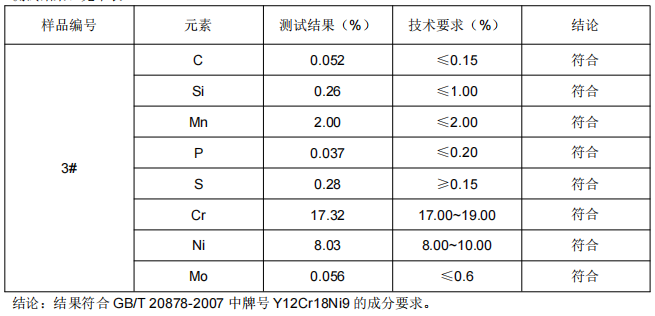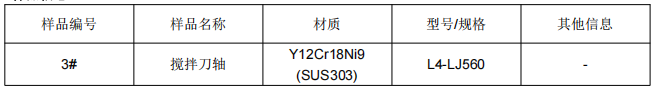 样品名称:搅拌刀轴SUS303不锈钢成分分析