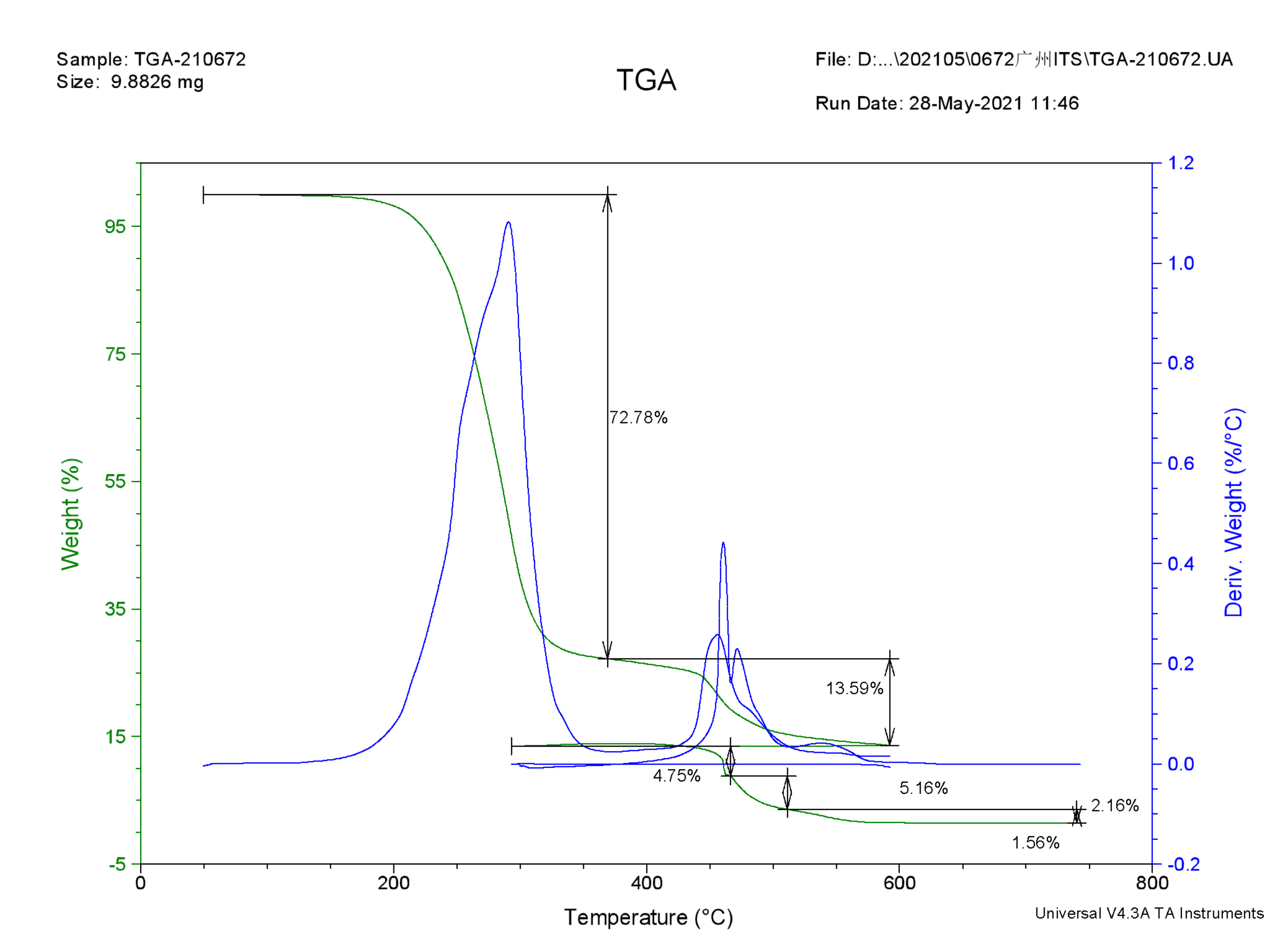 测定方法: Refer to ASTM D 2124-99(2011),analysis was performed by FTIR, TGA, XRF and PGC-MS