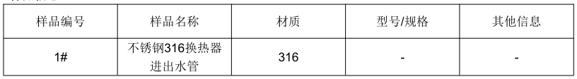 一、样品信息:不锈钢316换热器进出水管焊接工艺评定-焊缝宏观金相测试