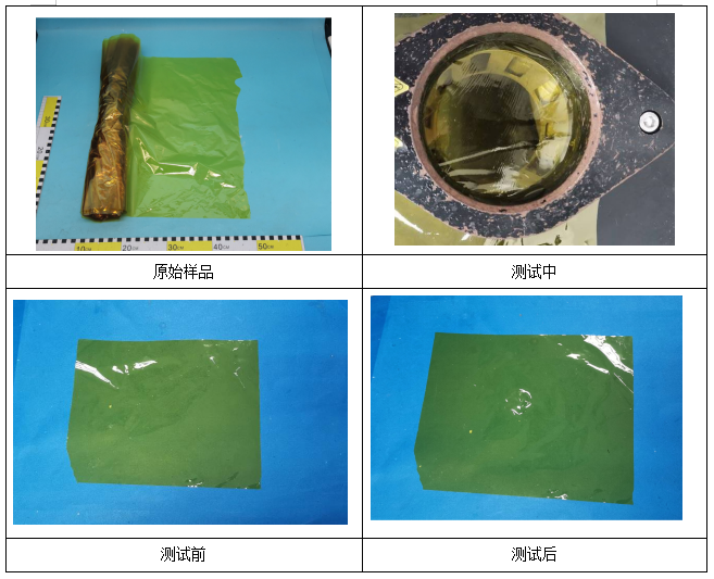 备注:测试试样从样品中裁取。