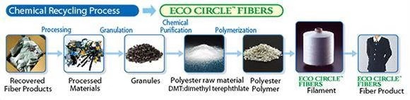 但是近几年化学法通过装备和工艺的创新,呈增长趋势,其主要优点是对废旧聚酯的分拣、清洗要求低。日本帝人从2002年开始规模化采用化学法生产再生涤纶产品,国内有浙江佳人新材料有限公司采用帝人的化学法进行再生涤纶的生产。我国目前还没有自主研发出化学法规模化生产再生涤纶的工业技术。