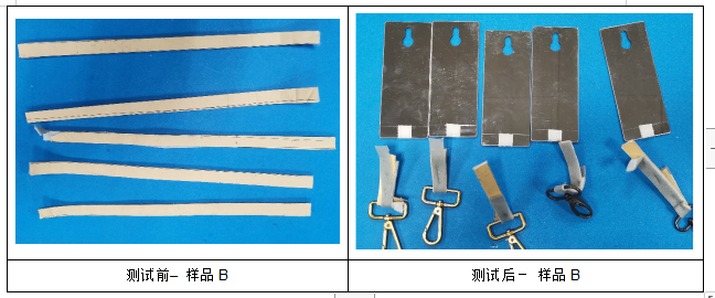 1.破坏类型:样品A中1#和2#和4#为内聚破坏,其余样品为基材破坏。