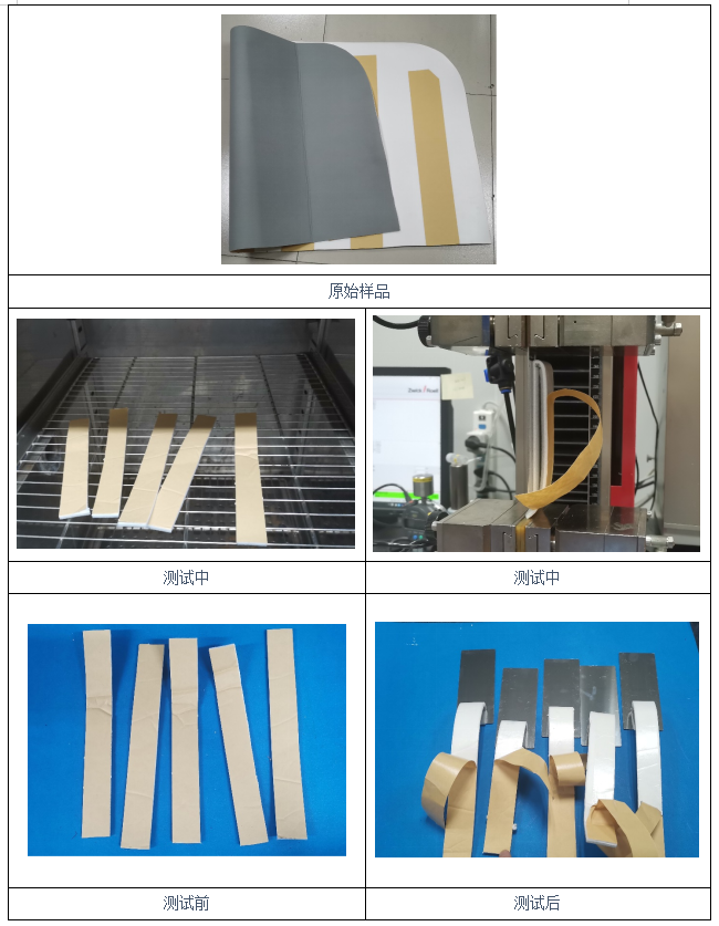 180° 剥离强度 (对钢板) | 6.4 | 6.4 | 6.5 | 6.2 | 5.6 | 6.2 | >5.0N/25mm或材料破碎 | 合格 |