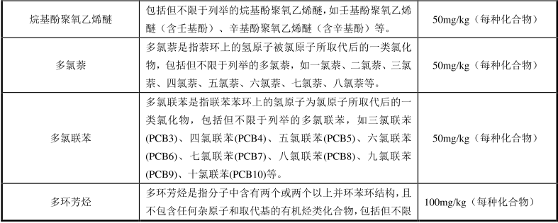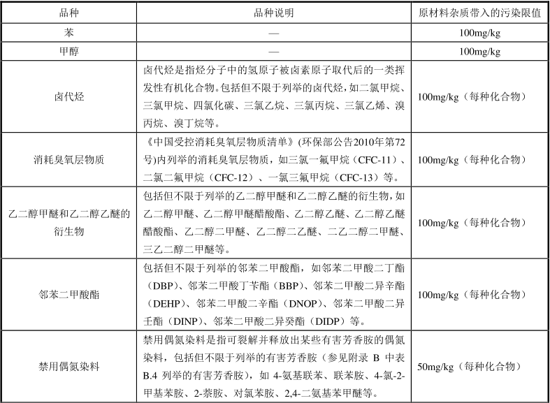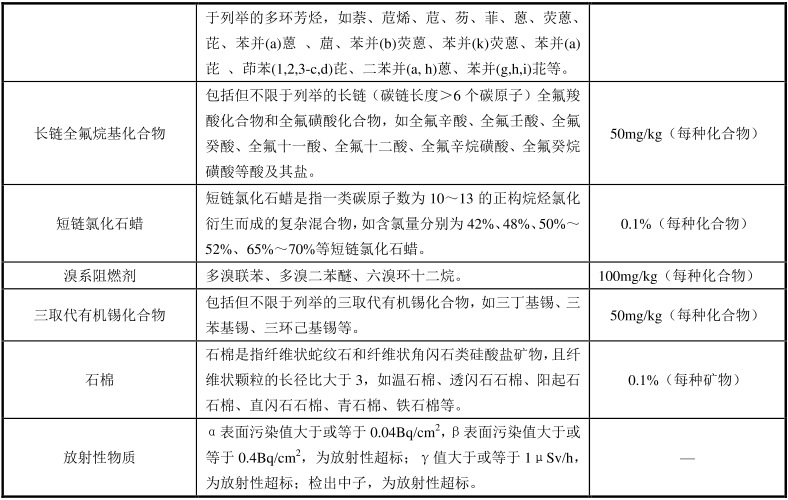 工艺、 装备, 不得有意添加表 1 中所列举的有害物质。