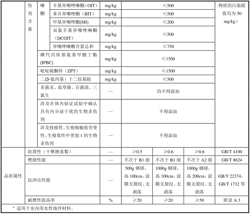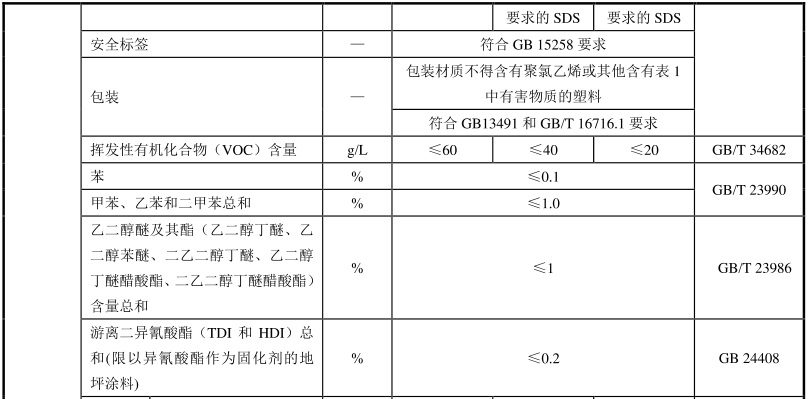 表 4 无溶剂型地坪材料评价指标要求(图:)