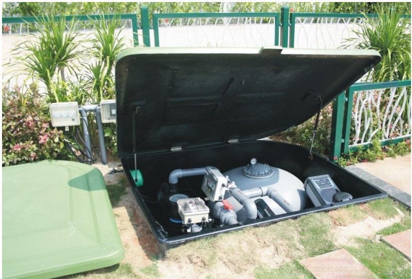 对游泳池使用后循环利用的水进行净化, 以去除水中悬浮固体和胶体杂质等为主要目的的装置。