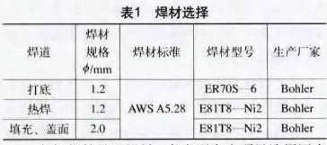(2)焊材的匹配 根据项目中所选设备及管道材质,确定采用和表1所示的焊接材料进行焊接。