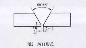 (3)焊接坡口设计 考虑到本次项目选用同直径、同壁厚钢管对接,钢管水平固定(5G位置)的方式,为了得到较好的单面焊双面成形效果,同时防止扩散氢无法及时排出,导致产生延迟裂纹等焊接缺陷,为此选择开口较大的坡口形式(见图2),有利于焊接过程中扩散氢的溢出,提高焊接质量。