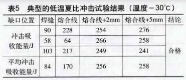 (2)力学性能测试结果 试验主要是根据中-缅海底管道项目技术规格书规格以及API 1104相关标准对材料特别是焊缝区域的强度、硬度、刚性、塑性和韧性等进行检测,进而起到焊接工艺评定的作用,试验结果为表3-表6所示。此外,侧弯试验和刻槽试验均未发现裂纹,结果合格。