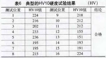 (1)焊缝外观及无损检测 焊接试验完成后立即进行强制水冷,冷却水流量为50L/min。24h后试件经过外观检查合格,其内部质量经过X射线探伤达到AP11104《管道及有关设施的焊接》中无损检测验收标准,评定合格。
