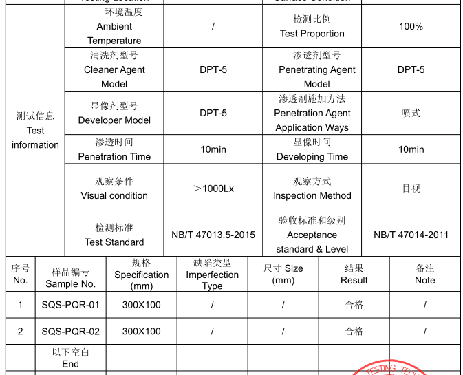 一、样品信息:q235b角接焊板渗透探伤-无损探伤