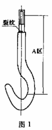 吊钩的螺牙、颈根部和弯曲部位是重点检查部位。图一中A区是检查中发现裂纹最多的区域。