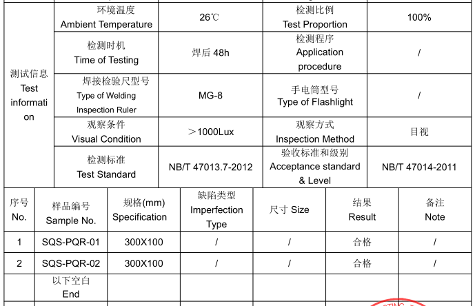 二、q235b碳素钢角接VT目视检测测试信息:
