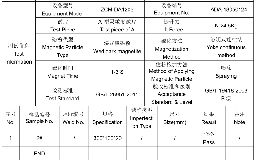 二、Q235B角焊缝焊接MT磁粉探伤测试信息: