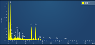 通过能谱分析,可发现失效处的孔隙处和基体成分,腐蚀产物含氯、含硫。