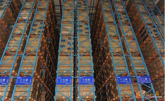 洋河酒厂智能化立体仓库,于2009年投入运行,是白酒行业内首款全自动立体仓库。整栋库房占地面积仅为8439平方米,可存放成品酒约85万箱,储酒能力近万吨,如果是普通的平库则要3万平方米才能满足存放要求,极大的节约了空间和提高资源利用效率。