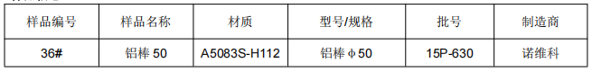 1. 样品信息:铝棒φ50铝合金金属材料拉伸试验