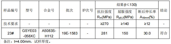 一、样品信息:A5083S-H112铝型材L型拉伸试验