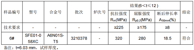 一、样品信息:A6N01S-T5角铝拉伸试验