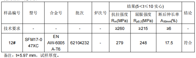一、样品信息:金属横梁铝合金拉伸试验