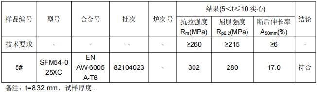 一、样品信息:金属缓冲梁铝合金拉伸试验