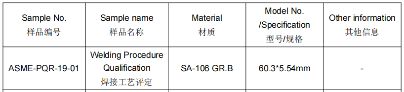 一、样品信息:高温无缝碳钢管焊接工艺评定