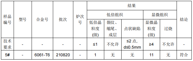 1、6061铝管成分鉴定:通过仪器分析手段确定样品的成分及其比例后,通过对照所提供的材料牌号对应标准的要求,判定其是否符合标准要求。
