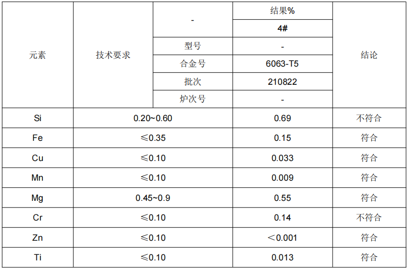 1、A6063天津铝管成分鉴定:通过仪器分析手段确定样品的成分及其比例后,通过对照所提供的材料牌号对应标准的要求,判定其是否符合标准要求。