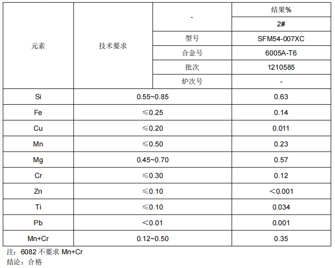 1、铝合金铝板成分鉴定:通过仪器分析手段确定样品的成分及其比例后,通过对照所提供的材料牌号对应标准的要求,判定其是否符合标准要求。