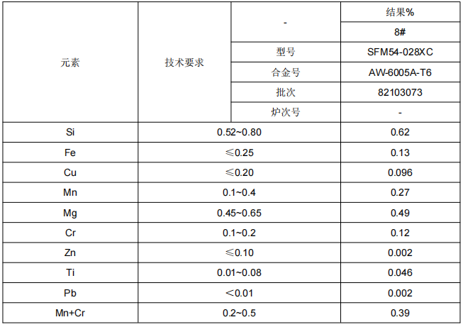1、端墙型材铝合金成分鉴定:通过仪器分析手段确定样品的成分及其比例后,通过对照所提供的材料牌号对应标准的要求,判定其是否符合标准要求。
