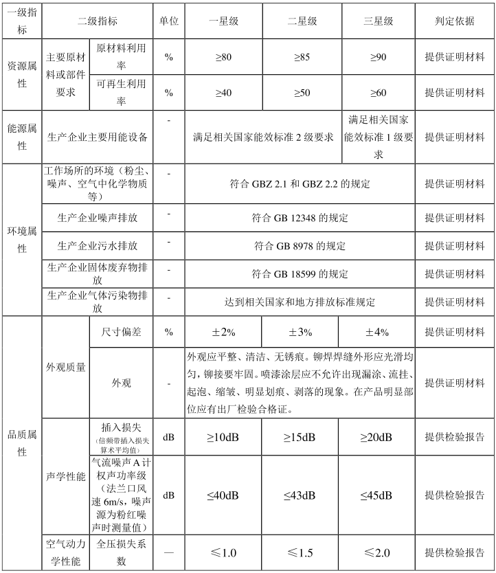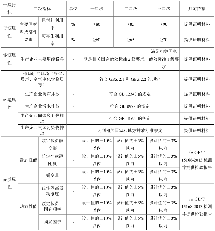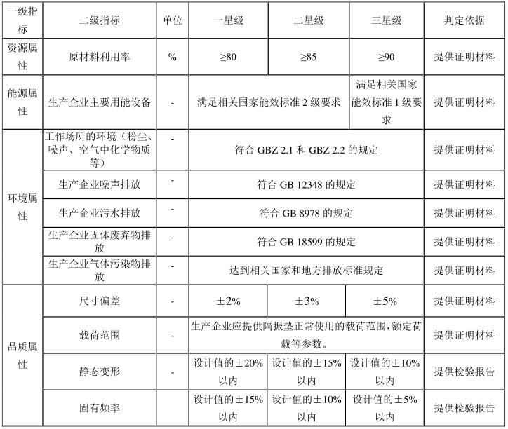 标、 环境属性指标和品质属性指标; 二级指标分别针对每类产品提出具体评价指标要求。