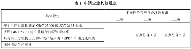 4.1.11 申请不同等级的生产企业还应符合表 1 的规定。