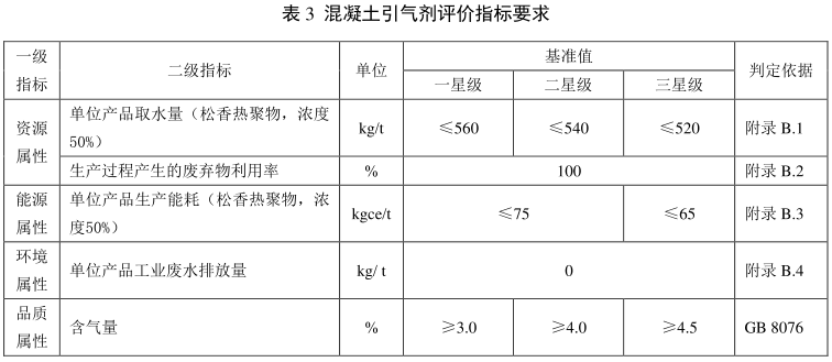指标、 环境属性指标和品质属性指标。 通过化学合成工艺生产的减水剂、 引气剂和膨胀剂的评价指标要