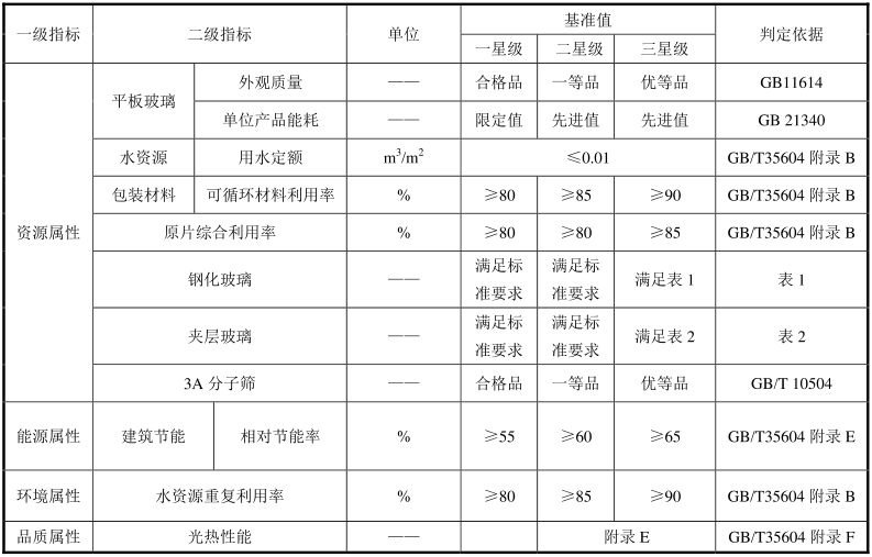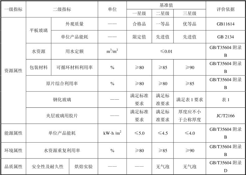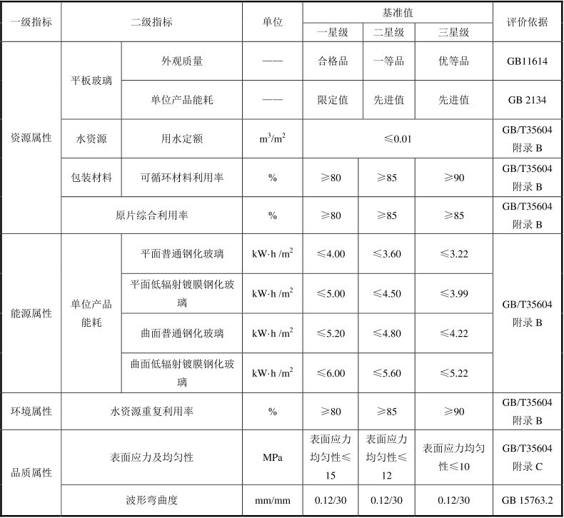 表 2 钢化玻璃绿色产品评价指标要求(图)