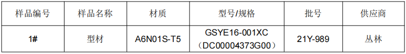 1.样品信息:金属材料A6N01S-T5铝型材拉伸抗拉强度实验-GB/T 228.1-2010