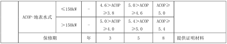 水(地)源热泵机组在额定制冷工况和额定制热工况下满负荷运行时的能效,与多个典型城市的办公建筑按制冷、 制热时间比例进行综合加权而来的全年性能系数,用 ACOP 表示。