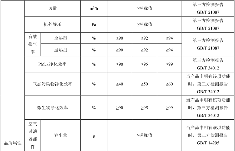 4.1.7 新风净化系统的性能应满足对应的产品标准要求。