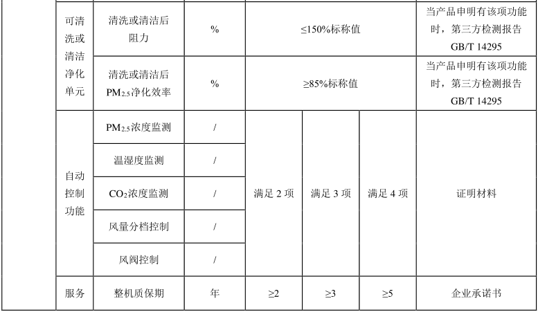 表 2 不带热回收功能新风净化系统评价指标要求(图:)
