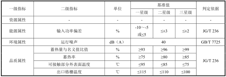 表 4 蓄热式电采暖散热器评价指标要求(图:)