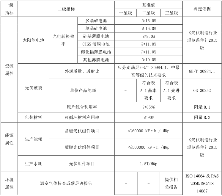 5.3 能源属性中光伏组件项目生产综合能耗和水耗分别按照《光伏制造行业规范条件》2015版规定进行。