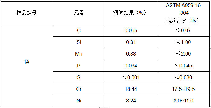 一、304不锈钢复合管成分鉴定:通过仪器分析手段确定样品的成分及其比例后,通过对照所提供的材料牌号对应标准的要求,判定其是否符合标准要求。