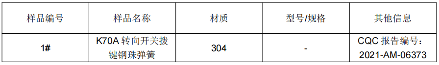 304不锈钢成分分析K70A 转向开关拨键钢珠弹簧服务项目