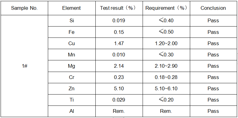 Conclusion: The result complies with GB/T 3190-2008 the type 7075 requirement.