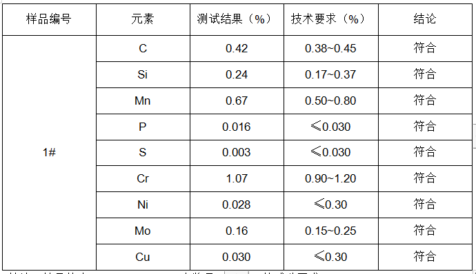结论:结果符合GB/T 3077-2015中牌号42CrMo的成分要求。
