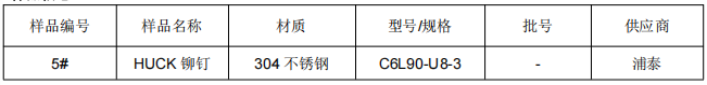 样品名称:HUCK 铆钉304不锈钢成分分析