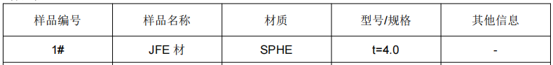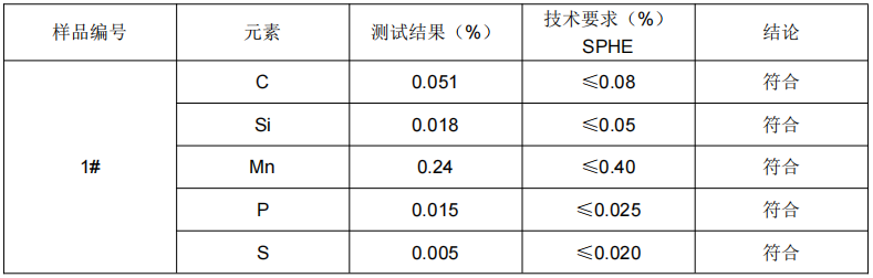 2、JFE碳钢成分分析:通过仪器分析手段确定样品的成分及其比例后,通过对照所提供的材料牌号对应标准的要求,判定其是否符合标准要求。