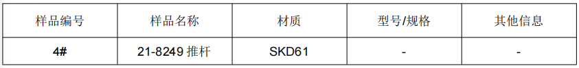 1.样品信息:SKD61推杆模具钢成分分析-氮化层硬度厚度 洛氏硬度 金相测试
