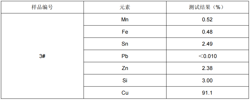 一、青铜成分鉴定:通过仪器分析手段确定样品的成分及其比例后,通过对照所提供的材料牌号对应标准的要求,判定其是否符合标准要求。