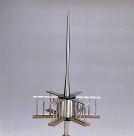 避雷针:保护建筑物等免受雷击的装置。本身为一良好接地的金属棒,安装在被保护物的顶端。当附近天空发生雷电时,避雷针经地线将雷电电流引入地中,使被保护物免遭雷击。